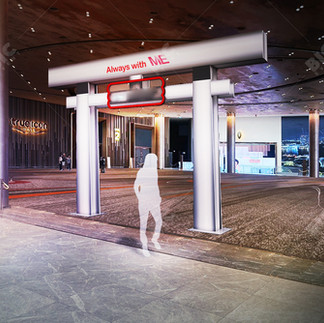 Visual Identity : Metallic tones, silver, electric blue, and neon lights will dominate the space to reflect technology, sophistication, and modernity.